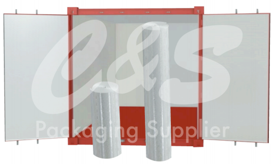 These covers insulate the container from external temperature changes. They are made from two outer layers of aluminium and a layer of low-density, 31.5-mm diameter polyethylene bubble wrap.