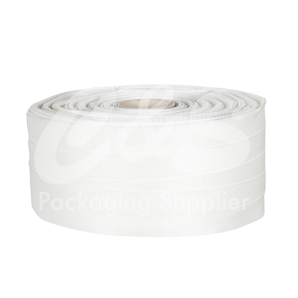 Fleje téxtil de poliéster que se utiliza generalmente para la sustitución de flejes de acero como alternativa de sujeción de cargas o embalajes especiales.