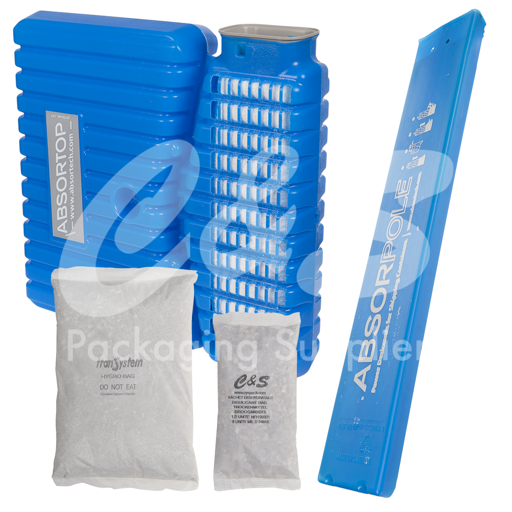 Quant aux sels déshydratants Absorpole, Absorbag, Absorgel et Absortop, ils sont idéals pour absorber l'humidité et les condensations d'eau des conteneurs. Ils protègent le chargement notamment contre la corrosion, la moisissure et les dégâts causés par l'excès constant d'humidité.